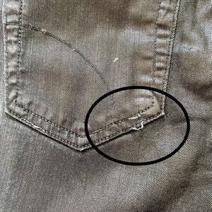 GUC = good used condition; some minor fading from wear (along waistline) and a few loose threads noted on back pockets
