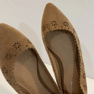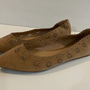 Joe’s Pointy Almond Toe Suede Cutout Flats Tan size 8.5