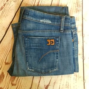 Joe's jeans with slight distressing near waist and pockets. Fit: Rocker. Size 30.