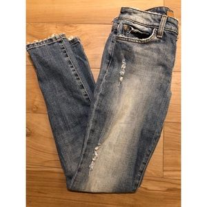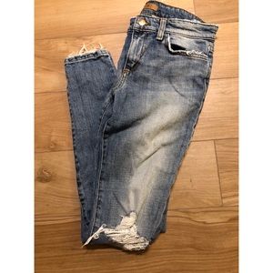 Only worn once! Joe’s Rolled Skinny Ankle Jeans in Cooper wash in a size 27. I unrolled them for a more modern look. These run small - the website says a 27=4 and they have a 30” inseam. Not a ton of stretch but super cute and look brand new! (Apologies for the bad lighting - the website photo shows the most accurate color!)