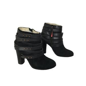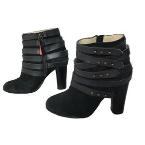 Joe's Seren Black Suede Booties Studded Leather Straps