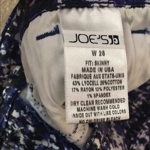 Unique patterned Joes jeans! These jeans come in a skinny shape in stretch denim with a micro floral pattern in black, cobalt blue, and white. Purchased from Nordstrom.