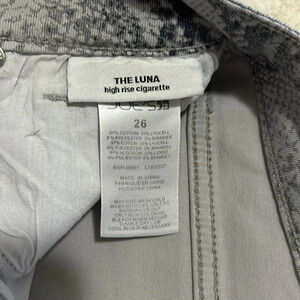 These are an awesome pair of gray snake skin stretchy jeans by Joe’s. The Laguna high-rise cigarette in a size 26. Silver detail. See photos