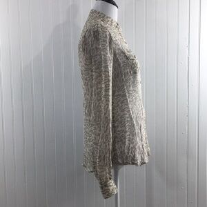 Joe's Tan Silk Rock Leopard Button Front Shirt Womens XS Sheer Long Sleeve
