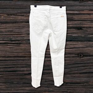 White, high rise skinny ankle, raw hem, stretch
