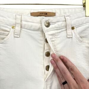 Joe's The Smith White Denim Button Fly High Rise Straight Ankle Crop Jeans