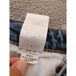Joe’s Women’s 29 Denim Cutoff Shorts – Blue Hem with Red White Side Stripes