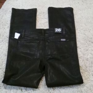 Joes black coated jeans size 26 high rise boot cut NWT. 80% cotton 18% lyocell 2% elastane machine wash. 5 pocket, zip button fly closure with belt loops