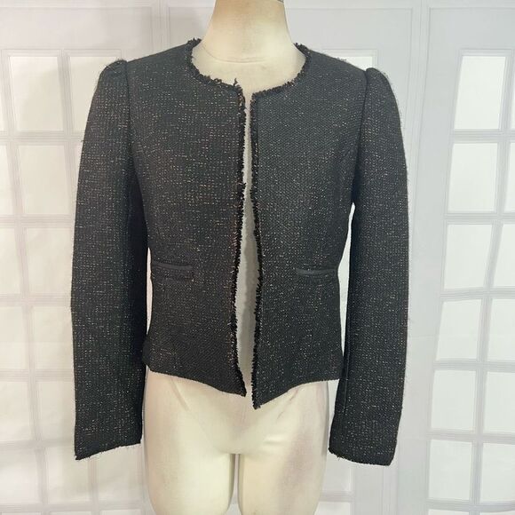 Joe’s black tweed bronze metallic grey hem jacket size medium