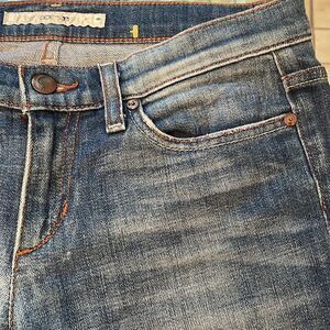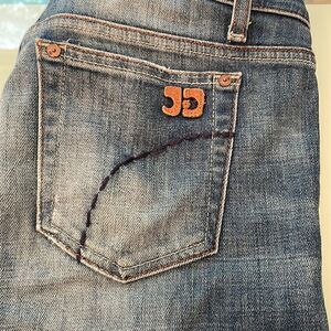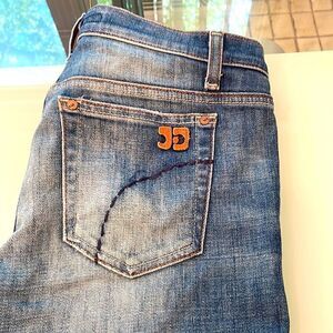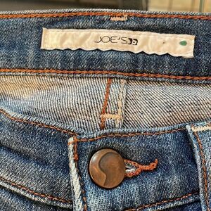 Joe’s jeans 27 socialslite faded Distressed on the bottom of both legs light stretch laying flat approximately 30 waist 30 inseam 8 inseam