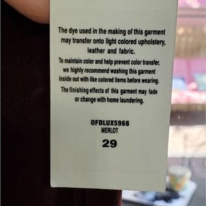 Joe's jeans merlot velvet the icon skinny jean size 29 new!!!