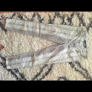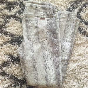 Super cute Joes Jean, mint green and gray, snake print pattern. Fit is "high water". Cropped fit and higher waste. Cute with a simple tee or sweater. Worn once as they are a bit to small for me:(.