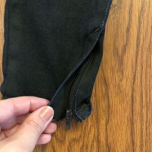 Dark wash skinny jeans with inside ankle zips. Slight fading on inner thighs as shown in last photo.
