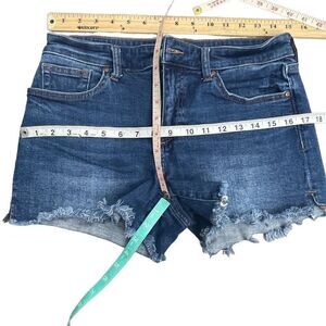 Like new, worn once. 5 pockets, distressed raw hem, 98% cotton 1% spandex. All measurements shown in photos.