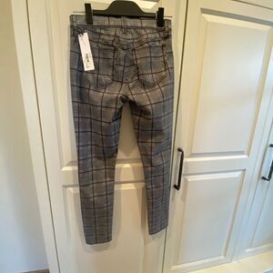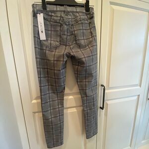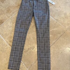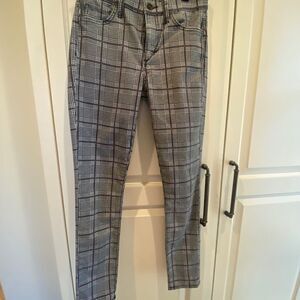 Black White and Plum c Houndstooth checked jeans. Stretch; ankle length. Size 26. Belt loops with 5 pockets. Dimensions in photos.
