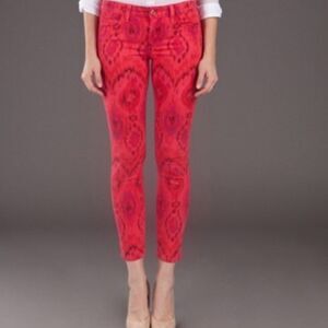 Joe’s jeans red and pink tribal print skinny ankle jeans