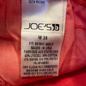 Like new Joe’s Jeans red and pink tribal print skinny ankle jeans. EUC, great shape, size 28 (6), cotton spandex blend for stretch and shape, see pictures for details.
