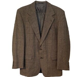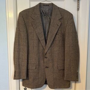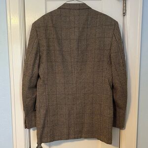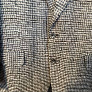 Joesph Abboud Blazer Tan Gray Houndstooth Plaid Wool Fishermancore Preppy Sz 41L