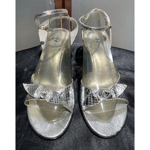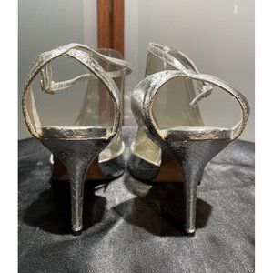 Joey O Amelia Silver Metallic Snake Print Ankle Strappy Peep Toe Heel Sandal 8 M