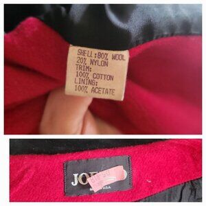 Jofeld Vintage Long Red Wool Overcoat W/Black Velvet Collar & Double-Breasted