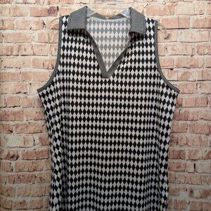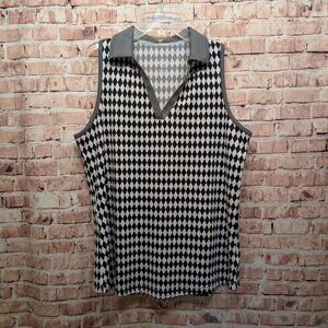 Jofit Black/White Diamond Sleeveless Golf Polo Size Large