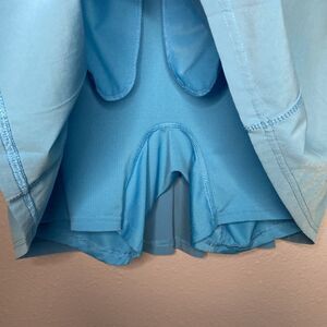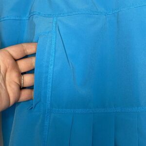 GUC front zippered pockets, mesh shorts underneath, pleated front and back, elastic waistband great stretch