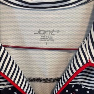 Jofit Navy Polka Dot Sleeveless Top with Red Trim