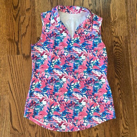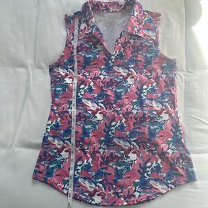 Jofit Sleeveless Collar Golf Tank Top Floral Pink Blue Size S Tennis Active