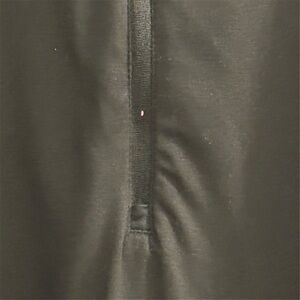 The Jofit women's basic jacket in size XXL features a solid black color with a half-zip closure and a mock neck design. Made from a blend of polyester and spandex, it offers a regular fit with long sleeves. This jacket is manufactured in China and is suitable for regular size types. It is pre-owned and has a small pink spot as shown in the picture. Keywords: Jofit, women's jacket, XXL, black jacket, polyester, spandex, half-zip, mock neck, long sleeve, solid pattern, pre-owned, China, regular fit, basic jacket, women's clothing.