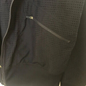! Jofit Women's navy Blue Full Zip Long Sleeve Mesh Bomber Rib Trim Jack…