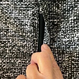 Jofit black and white patterned skirt with black undershorts. Pockets on the front and the back. Zipper front. Size 14. Waist:20 inches. Length: 20.5 inches.