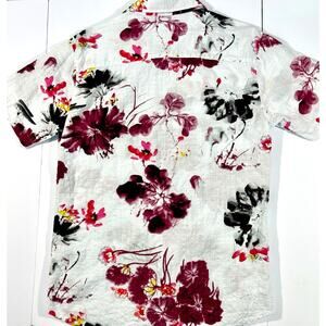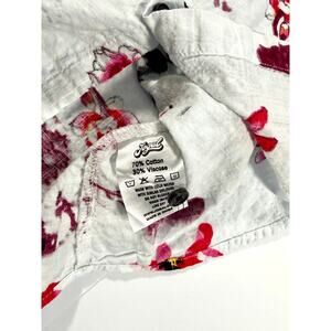 Jogal Mens Button Down Short Sleeve Hawaiian Floral Print Linen Style Medium