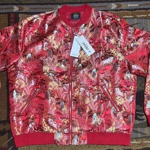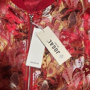 Jogal Style Jacket Mens Medium Red Embroidered Satin Bomber Chinese New Year Y2K