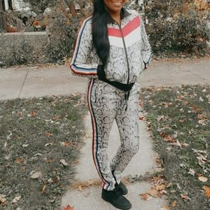 Snake Print 2 pc Set With Race Strip Soft Thick Winter Fabric
