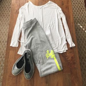 Justice for girls Heather grey Joggers with bright yellow sequin lettering "SOFTBALL " and lines on the left leg. Good condition; no fading, tears or holes. Some piling between legs. 60% cotton/40% polyester.