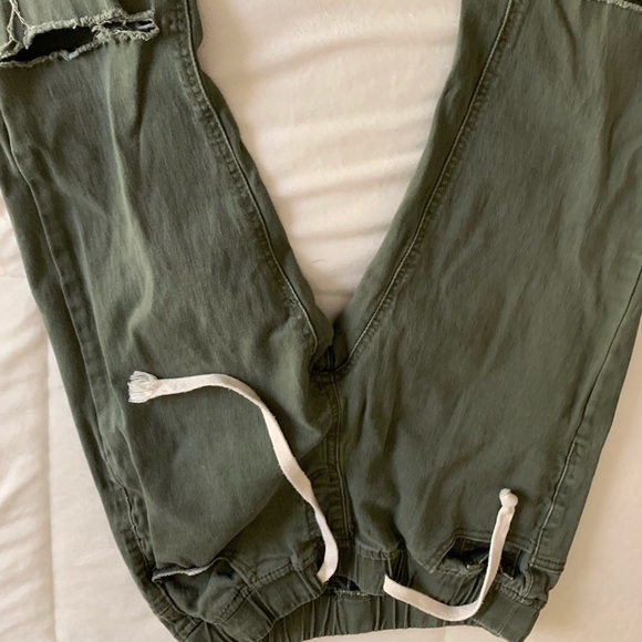 Fashion nova Olive color joggers, holes in the knees. Very comfortable. Too small. Size M
