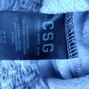 CSG thick grey joggers. Elastic and drawstring waistband. Two front pockets. One back pocket.