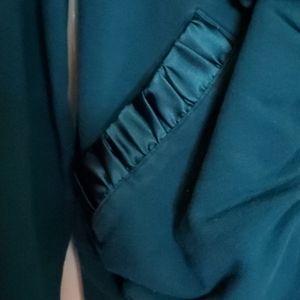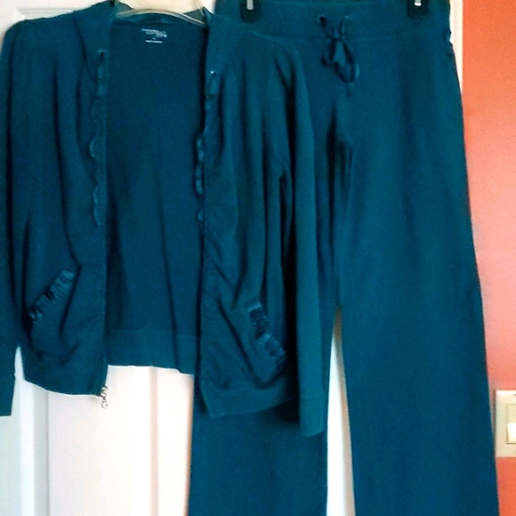 Comfortable suit! Teal in color. Has silky trimmed pockets and hood. Great condition!