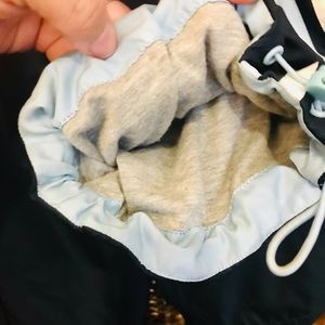 St John’s Bay reversible jacket, jersey lined pants, hooded jacket, draw string at ankles on pants to keep cold out, snap adjustable wrists on jacket, snap and zipper up pants. Very soft and comfy, from smoke and pet free home.