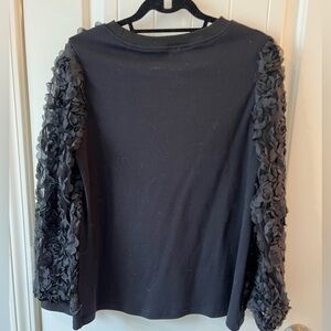 Don't miss out on this one. Our Raquel top is made with high-quality pointe knit and flower swirls stretch mesh. Round neck and long sleeves. So stylish and timeless. Easy relaxed fit.
