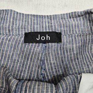 These linen shorts from Joh showcase a professional yet relaxed style, featuring a classic blue and white stripe pattern. The high-waist design with a tie belt adds sophistication, while the button details offer a polished touch. Ideal for warm weather, they provide comfort and style for a variety of settings.