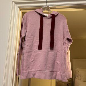 Color: Rose / Pink with Burgundy stripes (down the sleeves and string through the hood)