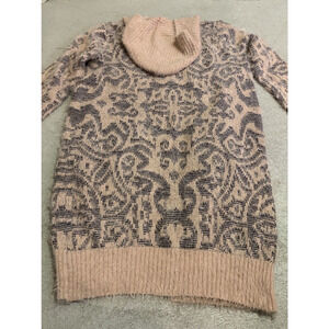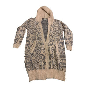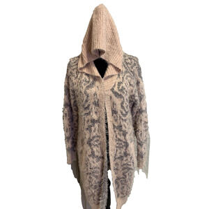 Joh Hoodie Sweater Womens S / M Open Front Long Soft Fuzzy Pink Pattern Cardigan