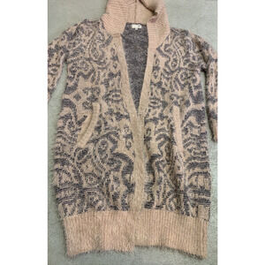 Joh Hoodie Sweater Womens S M Open Front Long Soft Fuzzy Pink Pattern Cardigan. Super cute & cozy sweater!