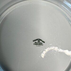 Bring vintage charm to your table with this set of two 10" Johann Haviland Blue Garland dinner plates. Made in Bavaria, Germany, these fine porcelain plates feature the classic Blue Garland floral pattern with elegant platinum trim. Perfect for replacing broken pieces or completing your vintage china set.