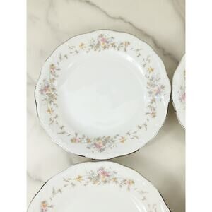 Johann Haviland Floral Splendor Bread Plate 6 1/4" Silver Trim 80s Germany x4