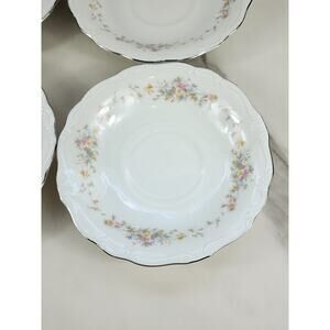 Johann Haviland Floral Splendor Saucers 6 1/4" Silver Trim 80s Germany x4 Vtg