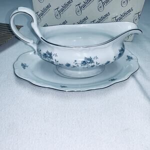Johann Haviland Traditions Blue Garland Gravy Boat and Liner Tray New In Box