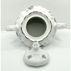 Elegant sugar bowl with floral blue garland design. Crafted from fine porcelain, perfect for adding a touch of classic charm to your tea set. Circa 70s.