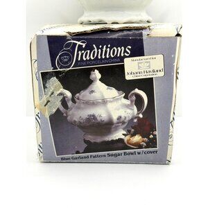 Johann Haviland Traditions Blue Garland Pattern Sugar Bowl With Lid Fine Porcela
